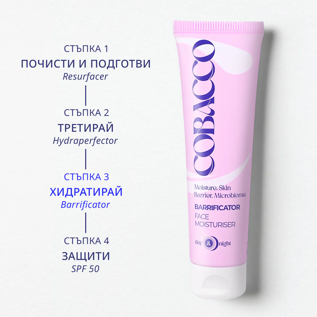 Barrificator Face Moisturizer осигурява мигновена хидратация от +79% и намалява загубата на вода още при първото нанасяне, без да запушва порите. Леката му, подхранваща текстура попива бързо и е идеална под SPF и грим. Работи в синергия със серуми и активни съставки.